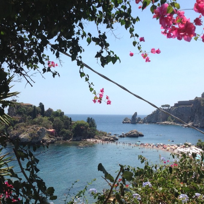 In Sicily in the summertime you can expect beautiful beach weather everydayđ. Yes everyday. A daily visit to yet another stunning beach is part of what makes Sicily such an inviting destination. In Taormina walk down the steps and walk out on that thin strip of sand to spend the day at Isola bella or beautiful island. Bring a book and dangle your feet in the water. I will let the pictures speak for themselves..