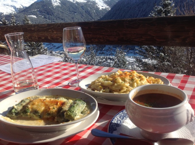 When in Davos you can take the funicular up to the Schatzalp or “Magic Mountain” and bask in the beauty, sunshine, and delicious Alpine food of the region. We found the Panorama at Restaurant Schatzalp. We had the perfect day to sit on the terrace and dine at one of the most scenic restaurants I have ever been to.